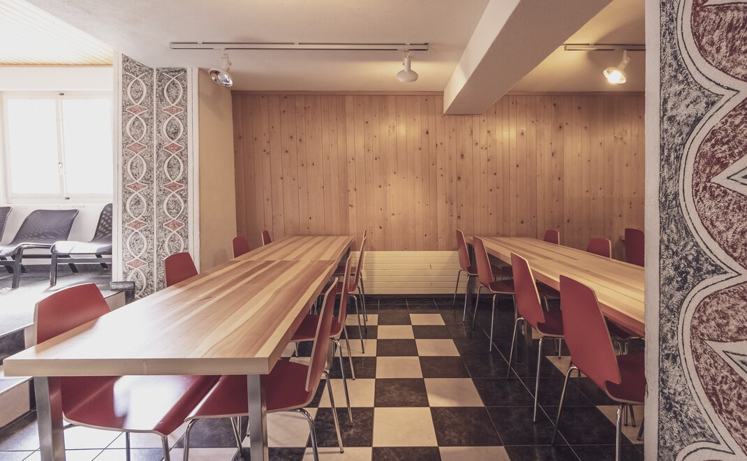 Die Unterkunft auf dem Jakobshorn bei der Mittelstation Jschalp ist ideal für Gruppen, wie zum Beispiel Schneesportlager. Für ein gemütliches Beisammensein nach dem Schneespass steht ein Aufenthaltsraum, sowie ein kostenlosem WLAN zur Verfügung.