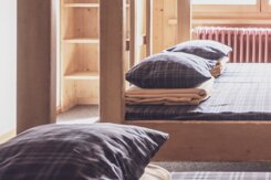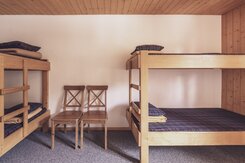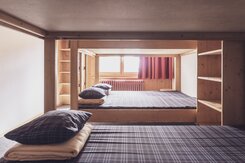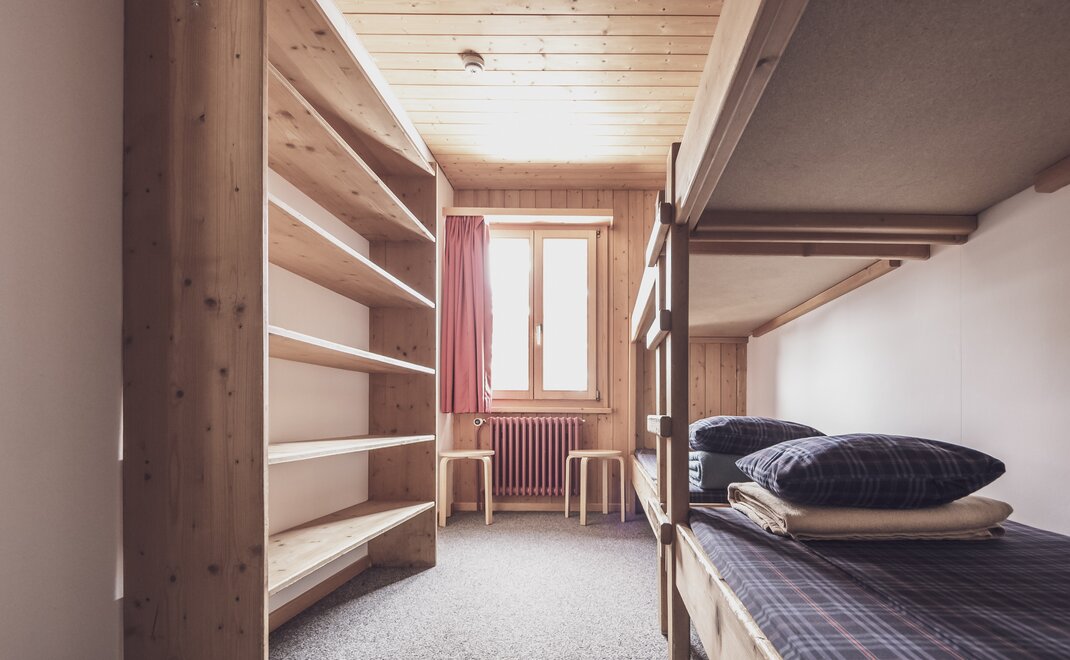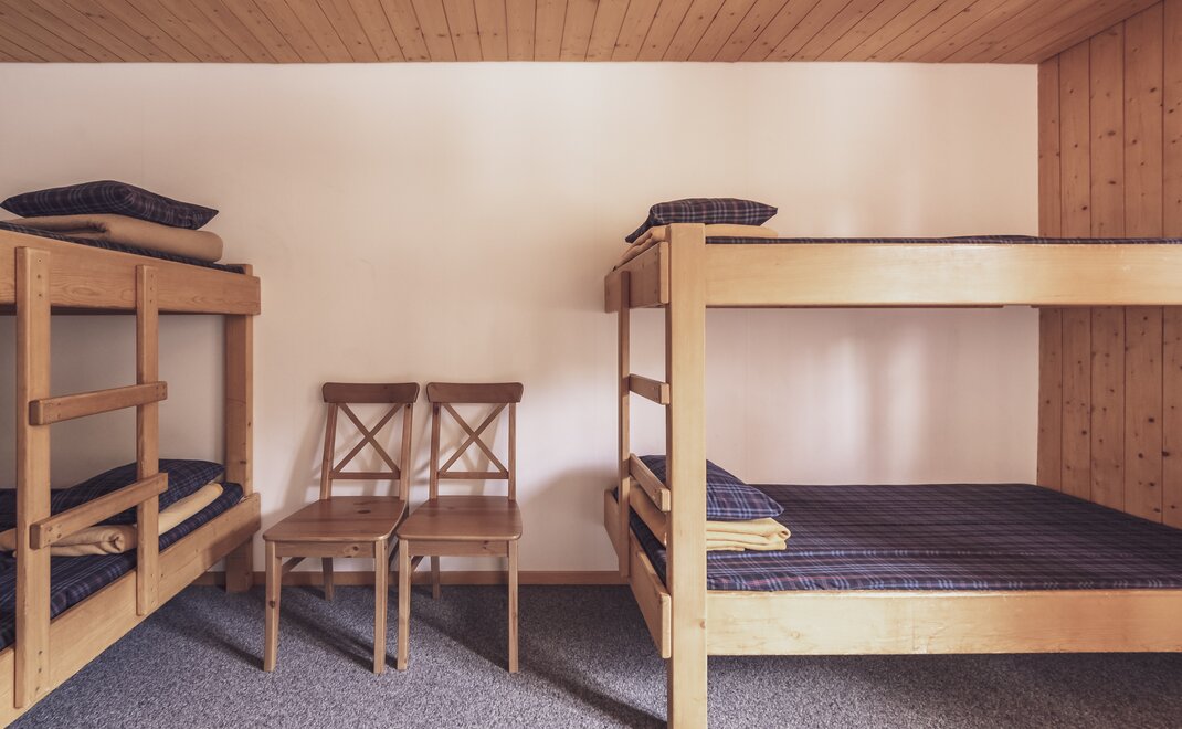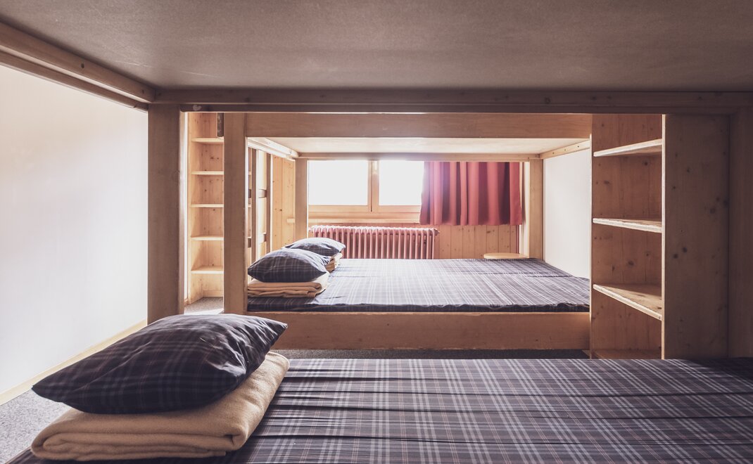 Das Berghostel bietet neun Mehrbettzimmer für bis zu 50 Gäste. Die Duschen und die Toiletten befinden sich auf der Etage. Die Zimmer sind praktisch eingerichtet, bieten genügend Stauraum für Kleidung und ein Fenster mit Aussicht.