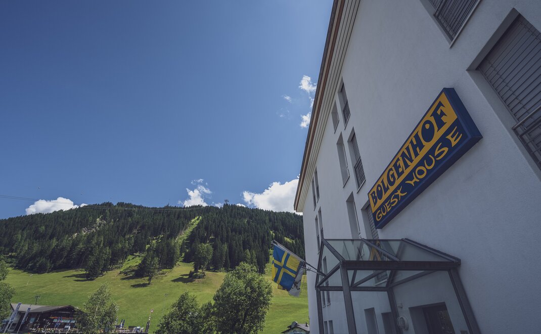 Das Guest House liegt direkt beim Bolgenareal: Im Skiraum mit abschliessbaren Schränken werden Ski und Snowboards sicher verstaut. Auch im Sommer bietet die Umgebung ein breites Angebot an Bergsportaktivitäten.