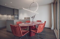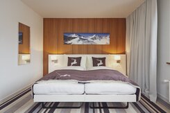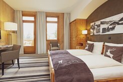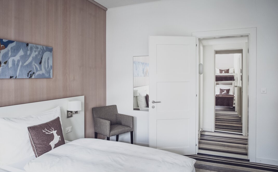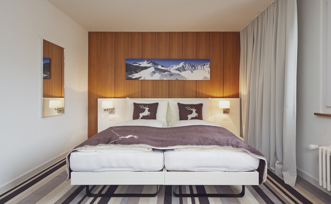 Bei der Anreise erwartet die Gäste eine geräumige Parkgarage mit Elektroladestationen. Von dort geht es direkt zum modernen Skiraum und zur charmanten Rezeption. Die stilvolle Cherry Bar und Lobby schaffen einen gemütlichen Treffpunkt. Die Zimmer, meist mit Balkon ausgestattet, bieten einen traumhaften Ausblick auf die umliegende Bergwelt. Der helle Fitnessraum mit Geräten der Marke TechnoGym in Ergänzung zum bestehenden Wellnessbereich schafft einen idealen Ort für ein Workout. Das Restaurant Bistro National rundet das Angebot perfekt ab.