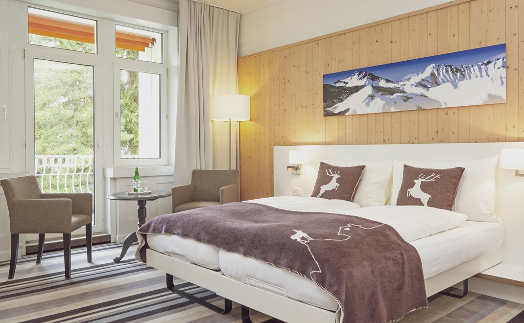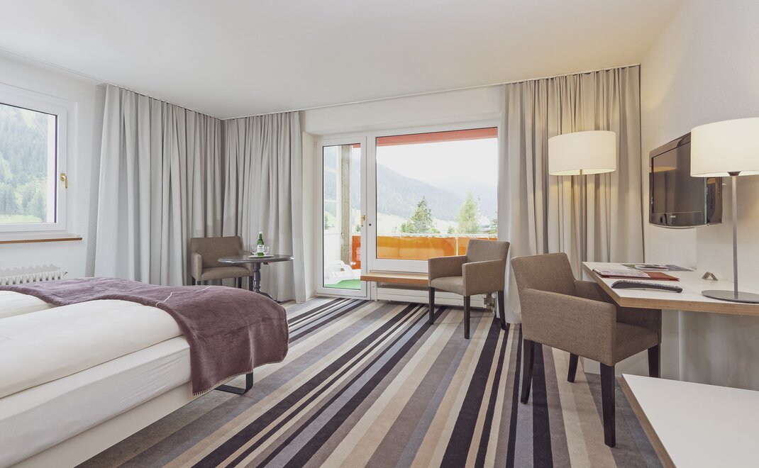 Das Hotel liegt sehr zentral in Davos Platz und mit dem hoteleigenen Shuttlebus gelangen Gäste im Winter direkt vom Hotel zur Talstation des Jakobshorns.