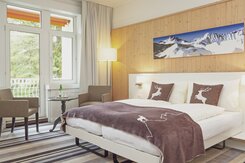 Das Hotel National verfügt über 60 Zimmer für bis zu 105 Gäste. Die hellen Hotelzimmer sind modern eingerichtet. Es stehen Einzel-, Doppel-, Doppelzimmer Superior und eine Suite für bis zu vier Personen zur Verfügung. Zudem gibt es zwei Ferienwohnungen. Alle Zimmer sind mit einem Badezimmer mit Dusche oder Badewanne sowie Föhn, Telefon, Flachbildschirm-Fernseher, WLAN, Radio und Safe ausgestattet. Die meisten Zimmer verfügen über einen Balkon mit Sicht auf das Jakobshorn.