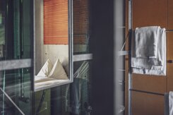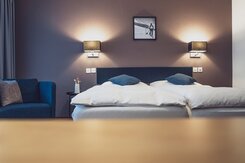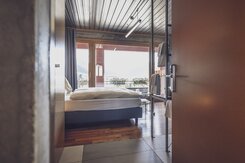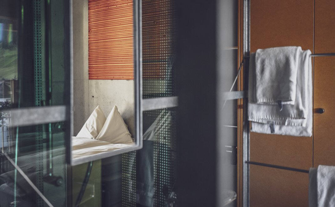 - Unterschiedliche Zimmerkategorien von gemütlich bis modern mit innovativer Kombination aus Beton, Glas und Holz
