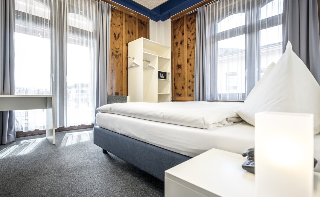 Wohlfühlen leicht gemacht: Das Hotel bietet verschiedene Zimmerkategorien von rustikal bis modern. Die Einzel-, Doppel- und Mehrbettzimmer sind komfortabel ausgestattet mit Dusche/WC, Fernseher, WLAN, Safe und Telefon. Die modernen Doppelzimmer-Deluxe sorgen für ein einmaliges Erlebnis auf den obersten Etagen des Hauses. Neu ist das Hotel als Drei-Sterne-Hotel klassifiziert.
