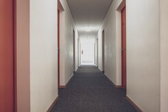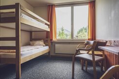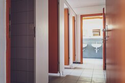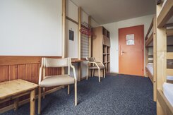 Die einfache Unterkunft bietet mit 15 Zimmern Platz für bis zu 52 Gäste. Die gemütlichen Zwei- und Vierbettzimmer verfügen über Stockbetten, genügend Stauraum, Bettwäsche und Handtücher. Die Duschen und Toiletten befinden sich auf der Etage.