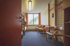 - Aufenthaltsraum in der Rinerlodge mit Tischfussball, Dartscheibe und Sitzecke