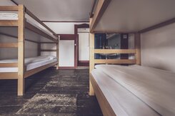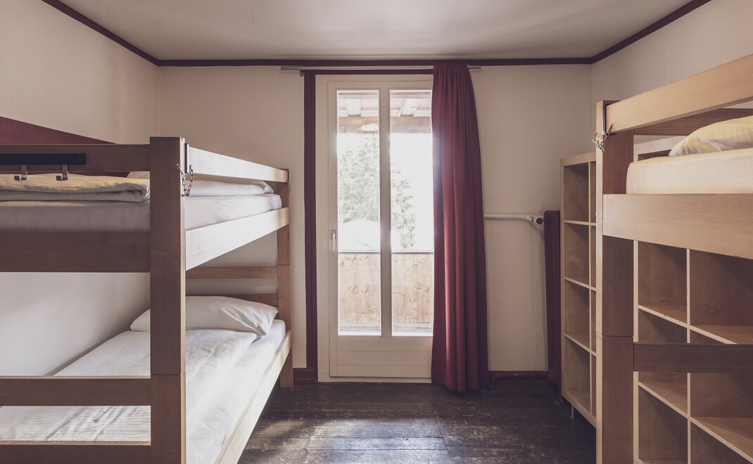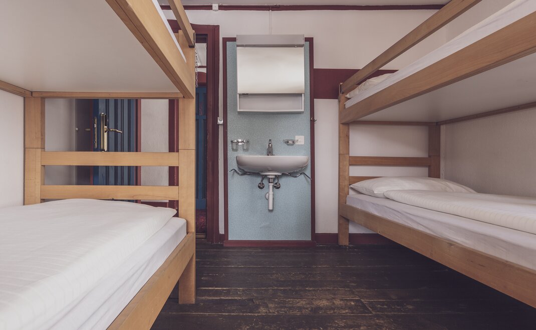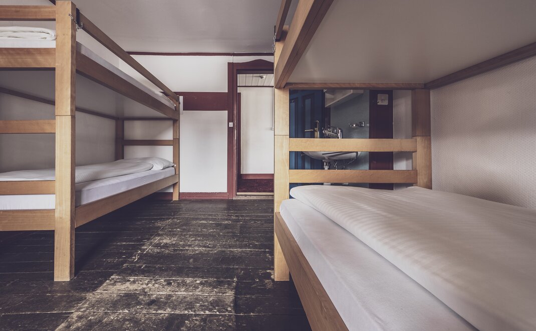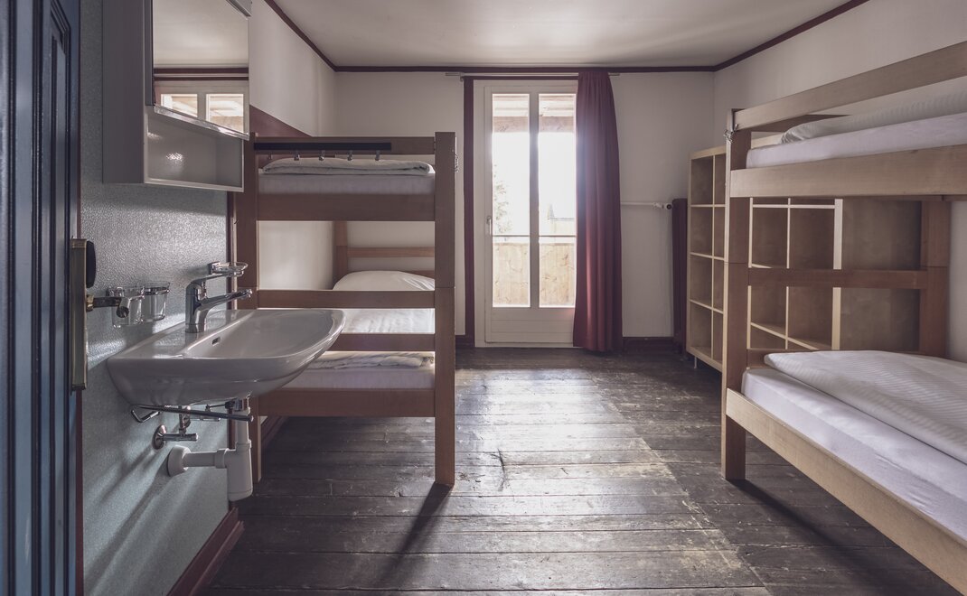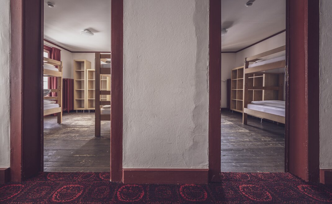 Die 23 Zimmer bieten Platz für bis zu 71 Gäste. Ausgestattet sind die Zwei-, Vier- und Fünfbettzimmer mit Stockbetten inklusive Bettwäsche und mit einem Waschbecken. Zudem verfügen einige Zimmer über einen Balkon mit Blick auf das Landwasser. Die Duschen und Toiletten befinden sich auf der Etage. Duschtücher werden von den Gästen selbst mitgebracht.
