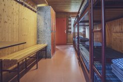 In der Gruppenunterkunft bieten die 13 Lagerzimmer Platz für 85 Gäste. Die Sechs-, Sieben- und Achtbettzimmer sind mit Stockbetten samt Kissen und Wolldecken ausgestattet. Die Duschen und die Toiletten befinden sich auf der Etage. Die Schlafsäcke für die Übernachtung sowie die Handtücher werden von den Gästen selbst mitgebracht.