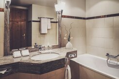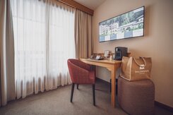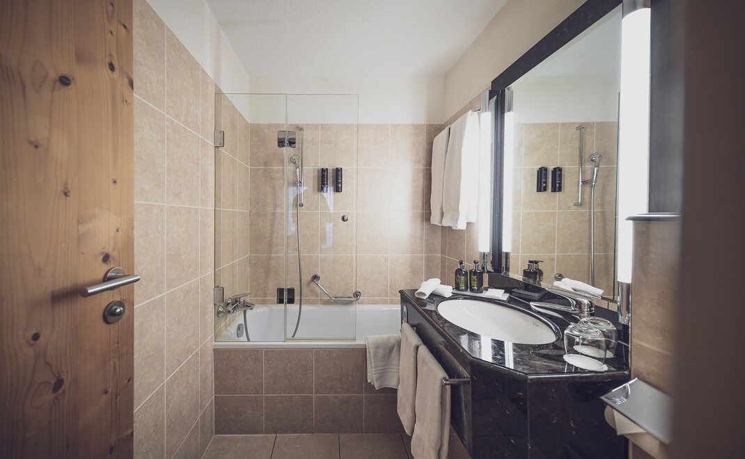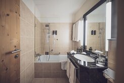 Im Executive 3-Bett-Zimmer hat es gemütlich Platz für bis zu drei Personen. Die dritte Person übernachtet in einem Zusatzbett. Die Zimmer verfügen über ein Boxspringbett (2 Matratzen à 100x200cm oder 1 Matratze à 200*200cm). Das Bad ist mit eine Badewanne und Dusche ausgestattet. Zimmer mit Verbindungstüren sind verfügbar. -