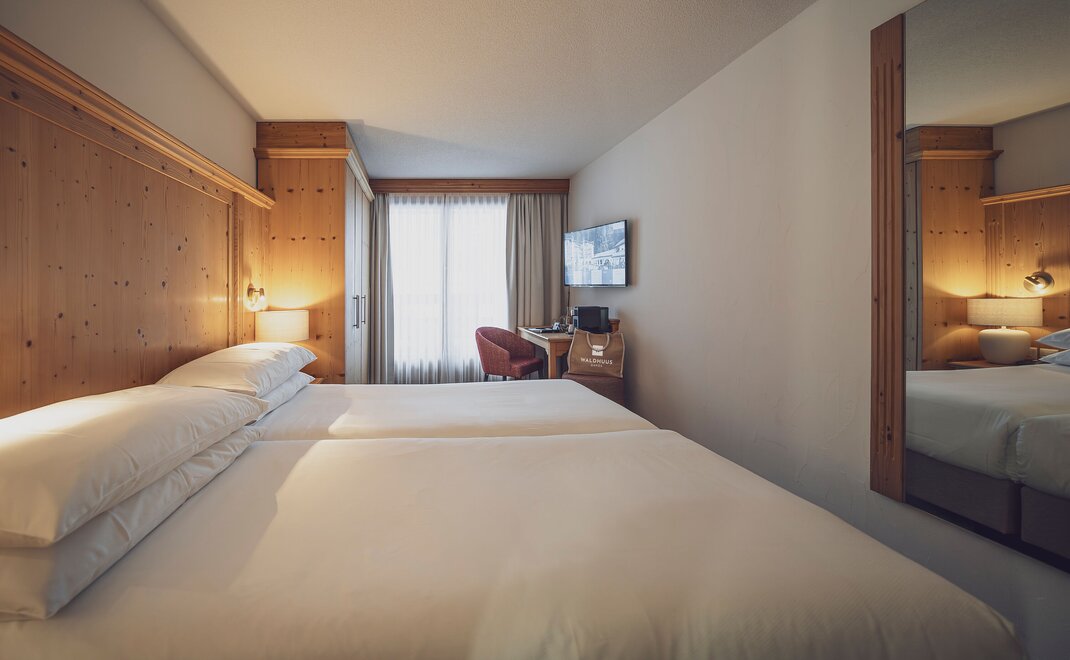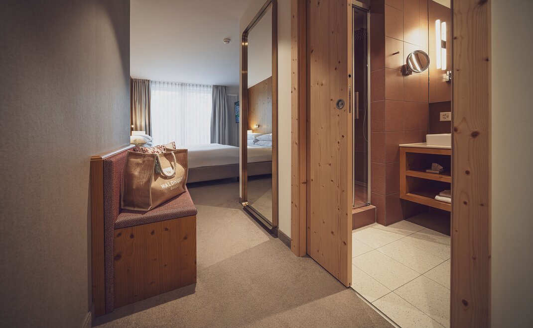 Herzlich willkommen in Chalet-Hotel Waldhuus! Inmitten der Schweizer Berge, direkt neben dem 18-Loch-Golfplatz, den Langlaufloipen und am Waldrand gelegen, befindet sich das Hotel Waldhuus mit 108 neu renovierten und stilvoll eingerichteten Zimmern und Suiten. Das Hotel bietet unter anderem einen kostenfreien Globi Kids Club und einen neuen über 800 m2 grossen Wellnessbereich mit einem Schwimmbad und verschiedenen Saunen. Damit kann Gross und Klein den richtigen Ausgleich nach einem ereignisreichen Tag an der frischen Bergluft geniessen. Mit dem Umbau im Sommer 2022 sind mit einer Aufstockung des Haupthauses neue Zimmer entstanden.
