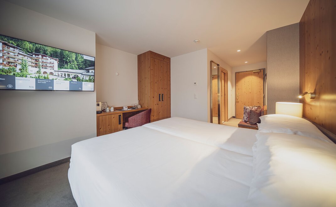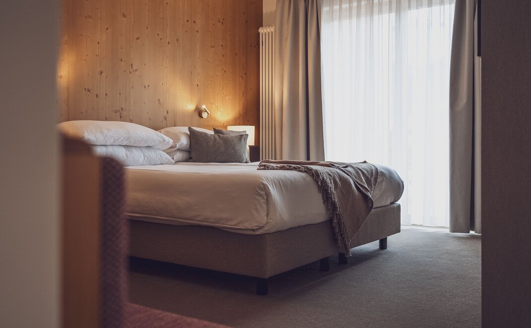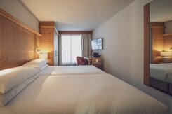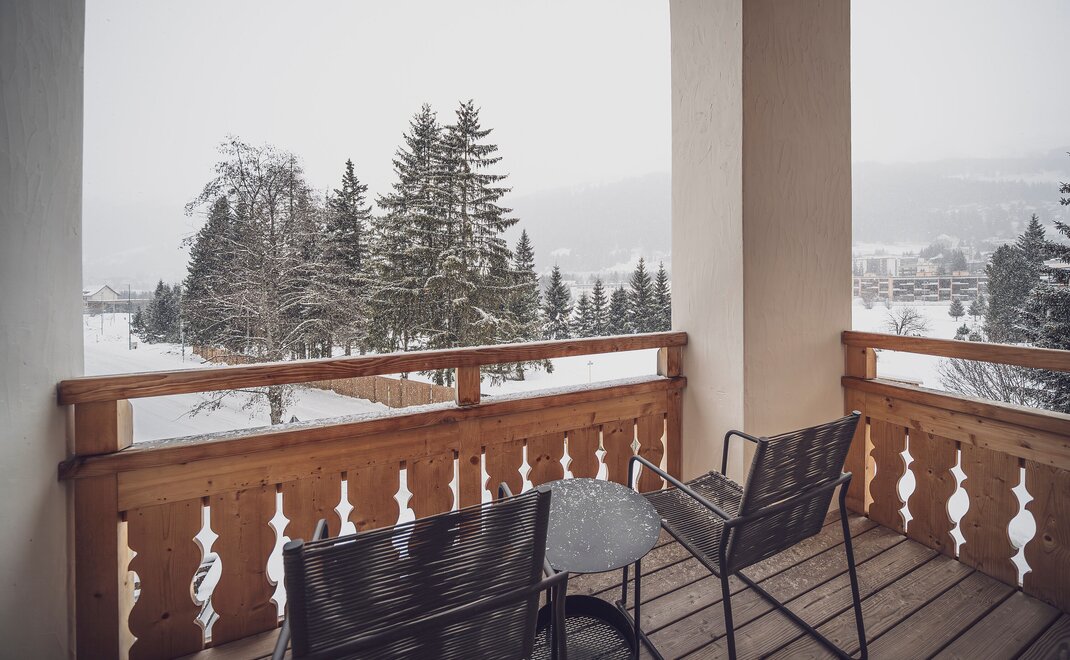 Mit 25 Quadratmetern Wohnraum bietet das neu renovierte Superior Zimmer mit Balkon oder Terrasse viel Komfort. Bis zu zwei Erwachsene mit einem Kind können gemütlich zusammen wohnen. Einige Zimmer bieten auch die Möglichkeit einer Verbindungstüre.
