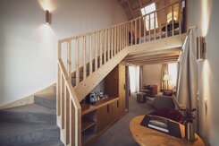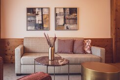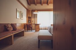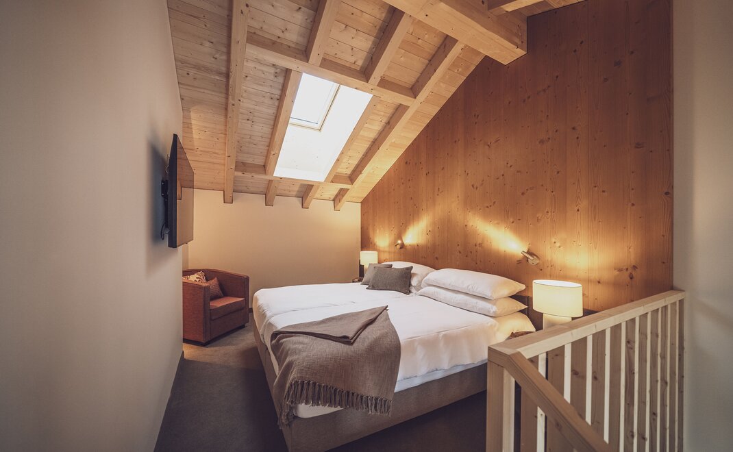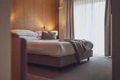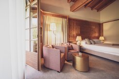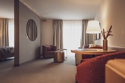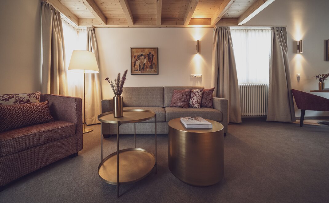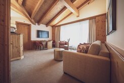 Die Junior Suite ist das perfekte Familienzimmer für bis zu vier Personen. Auf 38 Quadratmetern finden die Kinder Platz zum Austoben und die Eltern einen Ort der Erholung. Im separaten Wohnraum, getrennt durch eine Tür, können bis zu zwei Kinder auf einem Sofabett schlafen. Die Zimmer verfügen über ein Boxspringbett (2 Matratzen à 90x200cm). Das Bad ist mit Badewanne und/oder Dusche ausgestattet. Mit Balkon oder Terrasse sind es die idealen Räumlichkeiten für entspannte Familienferien. -