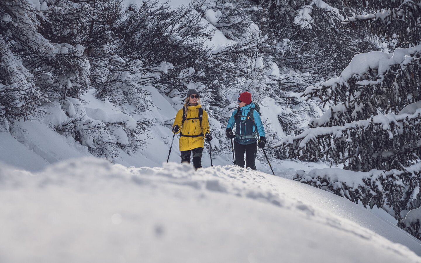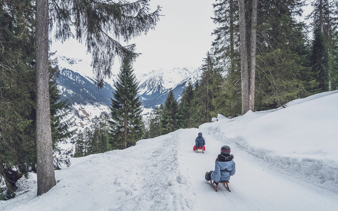 In the winter months, there’s a certain charm to hiking under blue or grey skies. A beautiful trail starting at the Rinerhorn mountain station takes you to the valley, crossing a wonderful landscape. You can warm up in the mountain restaurant Jatzmeder or in the Blockhuus before or after the hike down into the valley. It’s an incredible winter hike that’s also perfect for families.